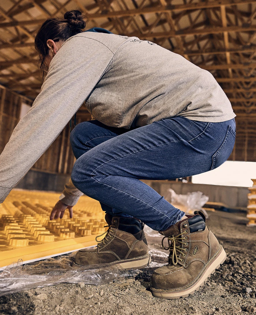 Women’s-specific comfort for the toughest jobs. This heavy-duty waterproof work boot is lighter in feel with a durable Goodyear welted wedge design.